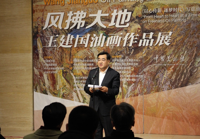 中共吉林省委宣传部常务副部长张宝宗表示,近年来以王建国为代表的吉林美术家,心系吉林振兴发展,坚持用手中的画笔、胸中的激情,热忱描绘吉林的自然景观和风土人情,勾勒吉林的历史和现在,凸显了吉林文化蕴涵的时代价值,深深体现着他们对家乡的关注和热爱。衷心希望以此次展览为契机,架设起吉林与兄弟省市广泛深入开展文化交流的友谊桥梁,努力开创吉林文艺事业新局面。