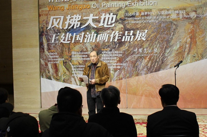 中国美术馆馆长、中国美协副主席吴为山在致辞中表示,王建国的作品主要展现出两个维度的特征:一方面,它是对中国东北地域广袤原野、恢宏大地的诗意抒写。作品中既有开阔宏大的原野,又有咫尺之间富于生命力的作物,强烈的色彩与流动的笔触碰撞交响,颂扬着黑土地的恩泽与丰饶的生命景象;另一方面,通过视觉的描绘,诠释出当代人在都市化进程中微观的内在变化,唤醒潜藏于城市景观中的时光记忆与人文精神。