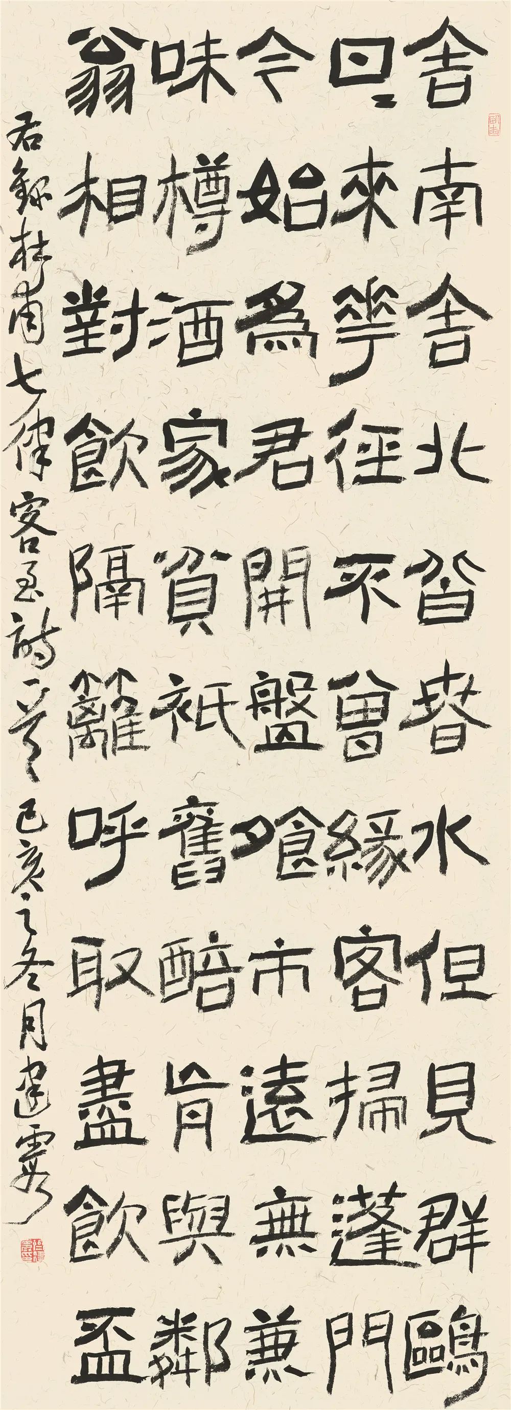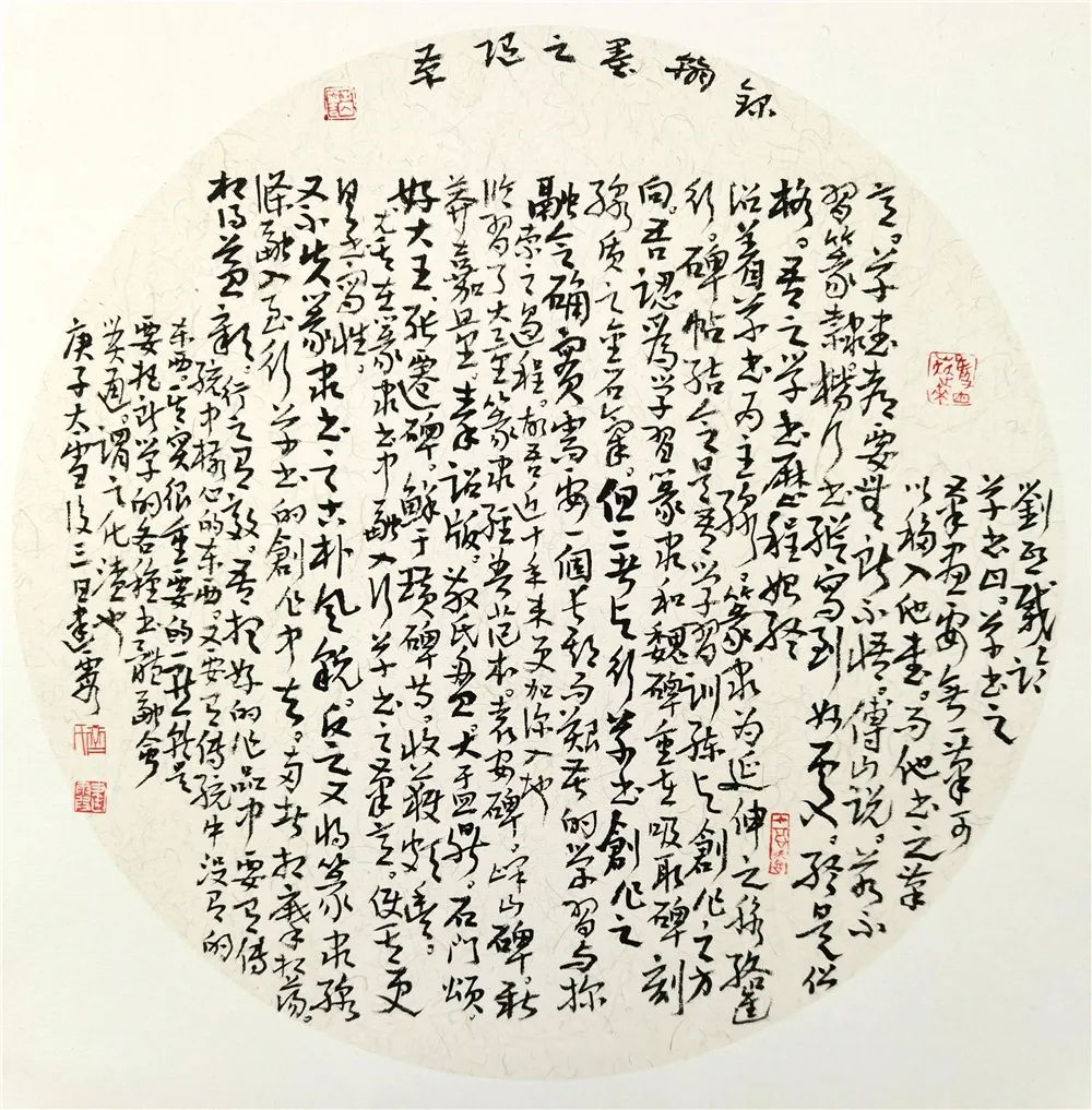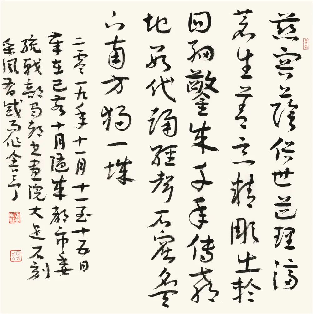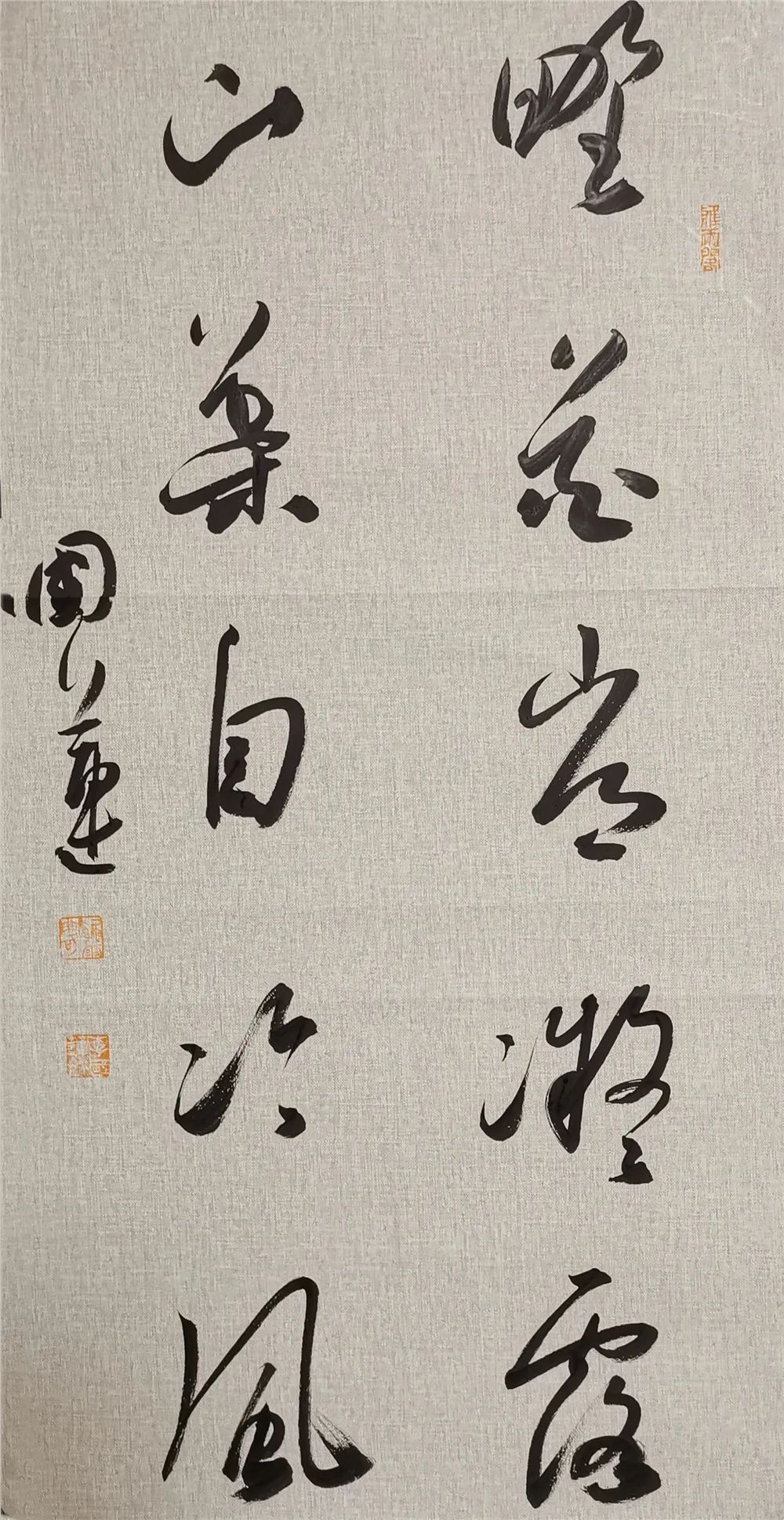 在书法创作中,注重气韵的把握,傅山提出“宁拙毋巧,宁丑毋媚,宁支离毋轻滑,宁真率毋安排”的书学审美原则。“朴拙酣畅、自然天成”也是我的审美追求。我希望在今后的创作中更能回归本性,自由而不逾矩,平淡祥和,人书俱老。
