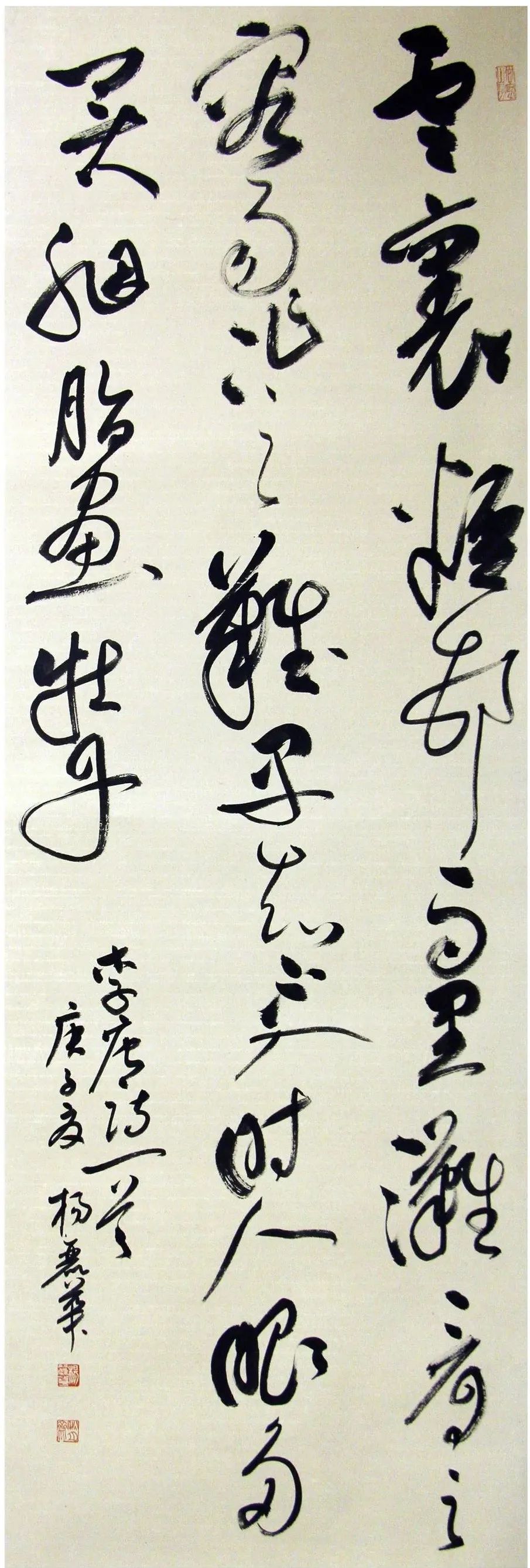 毕加索说,如果他生在中国,他将成为一位优秀的书法家。从他的话中,我们可以洞察到书法艺术的魅力所在。东方书法艺术那根神奇多变的线条让西方艺术大师如此的迷恋。而我则在自己30多年的书法实践中充分享受和体验到了书法线条的运行之美。起行顿挫犹如音乐、舞蹈的节奏与旋律。中国书法“无色而有图画之灿烂,无声而有音乐之和谐”。由于喜爱国标舞蹈的原故,我则更能感受到书法“无形体而有舞蹈之优美”,并延伸着我的舞蹈之梦。在书法中找到了如何调适我的生活、安顿我的精神与情感的方式。在自如、自得的书法语言中体察、丈量、表达自己内心深处丰富、细腻、浪漫的情感世界。在书法创作中透射出一股生机勃勃的鲜活气息,雍容非凡的气质,以及内心深处那些不可言喻的丰富情感和豪迈的性格。