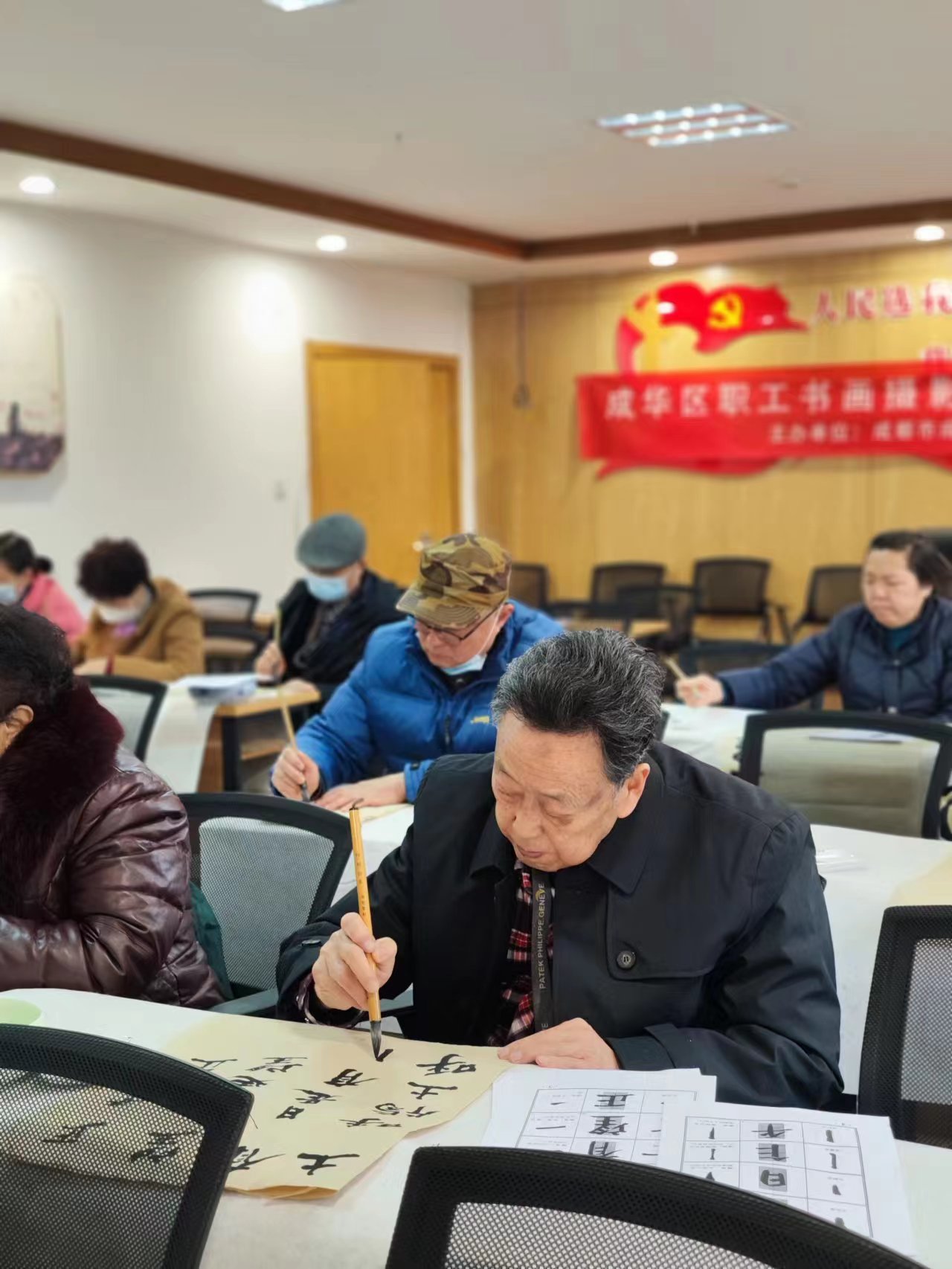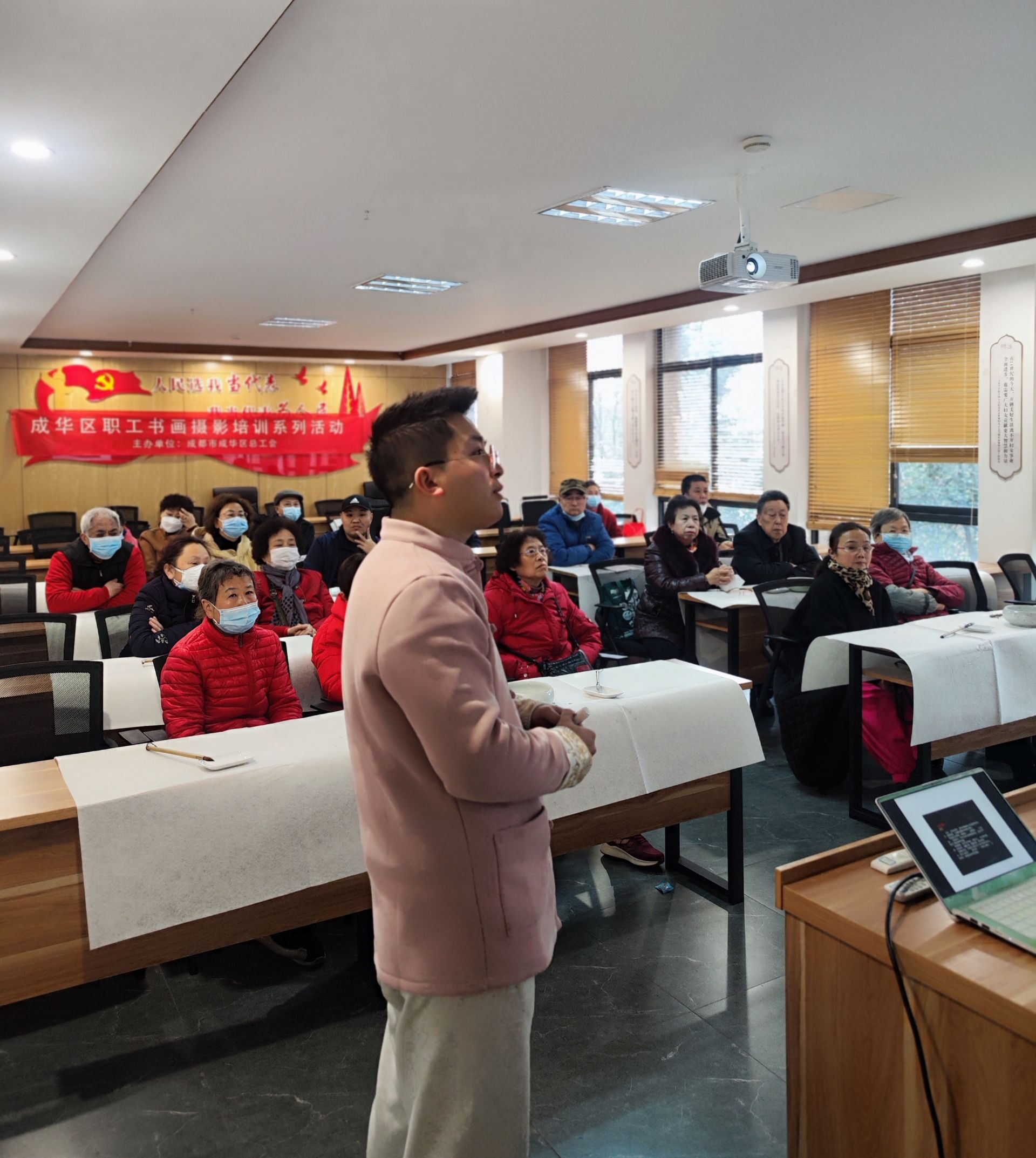2月17日,“成华区职工书画摄影培训系列活动——书法培训”在桃源社区邻里中心举行。本次培训活动由中国硬笔书法协会会员、四川省书法家协会会员杨松主讲,共有20多位书法爱好者参加了本次培训。现场老师指导大家在书法练习当中所遇到的问题,用书法培养心性,提升大家对传统书法艺术的兴趣。
