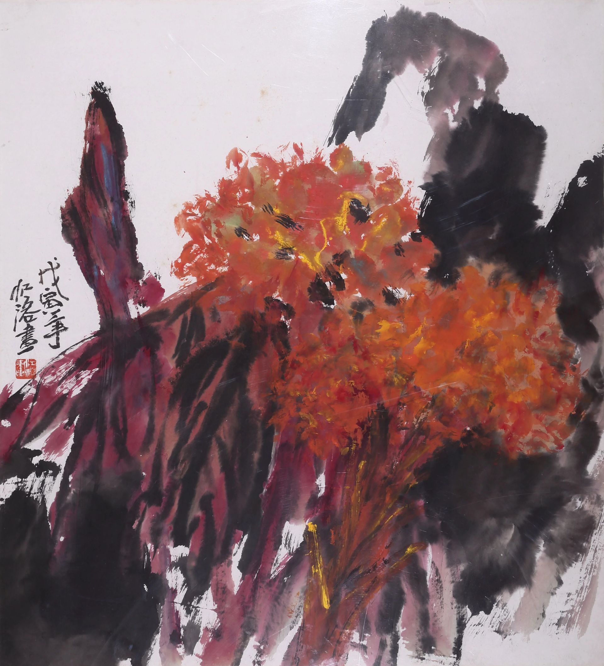 《一枝浓艳对秋光》75×68cm纸本设色 1998年