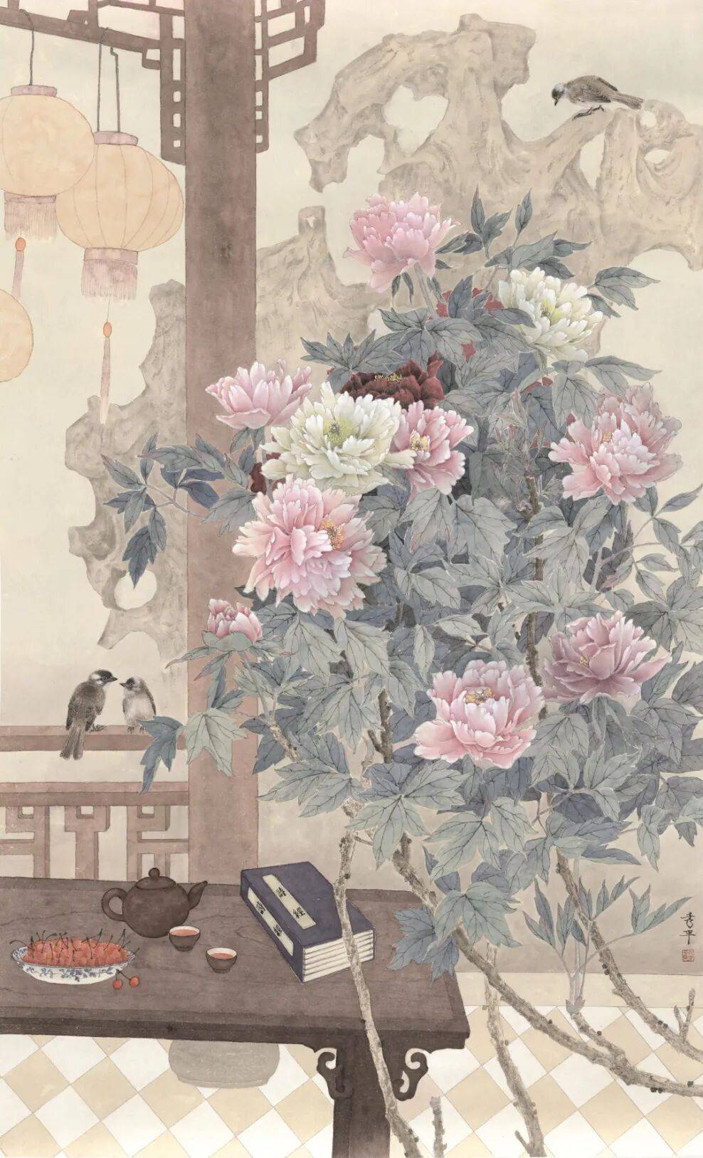 黄旭东《天彭牡丹谱意境图》180cm×97cm
