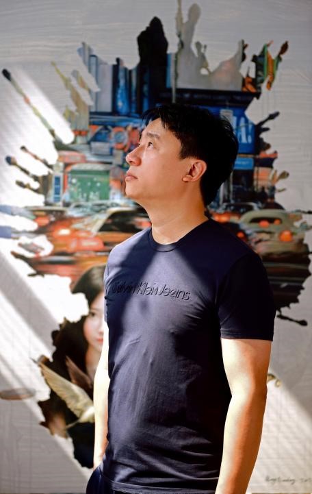 王念东的绘画表现了现代都市人群的内心情态,人间的繁华下的无尽欲望,现实与梦喃间的循环往复,清楚、鲜明、确实地让那个梦幻的记忆和定格来到人们眼前,或又将眼前的现实推至梦幻记忆的深处…