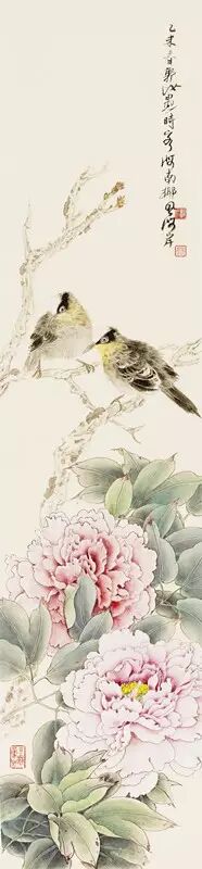深红色的玫瑰开满整个画面,八只虎皮鹦鹉亲密地站在玫瑰树枝上,两两交头接耳。这张象征爱情的画,挂在卧室的墙壁上,郭汝愚格外喜欢。中国文人总是不放过细节处的一丝温情。郭汝愚的家,就像一个书画展厅,书墨清馨。画桌上书卷半摊,笔墨未干,未完成的画作在墙上散发着氤氤墨气,书架上的瓷器则在一旁透射出盈润的光泽。