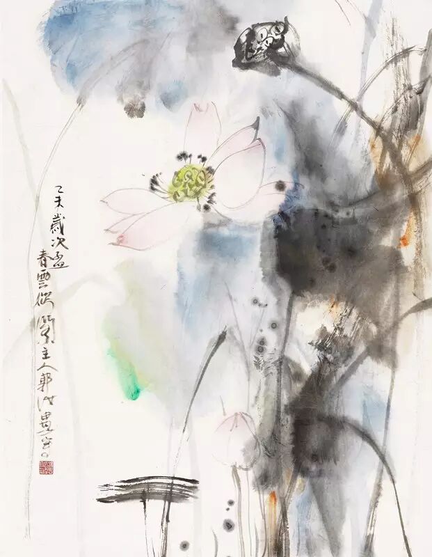 在强调“墨分五色”的国画以墨为主的色彩基调外,画面的整体效果所呈现出来的丰富变化,才是国画的文化精髓。郭汝愚示意自己的作品《写意荷花》,在墨色的浓淡和晕染的轻色中,似能感受到清澈透气的水面。“这种留白,就是一种‘气’局的表现,画面虽满,却透气。随着画中所绘,形成了一种动势,向一定的方向在运动着。所谓‘气局’。所以画不在大小,在乎气局要大。”