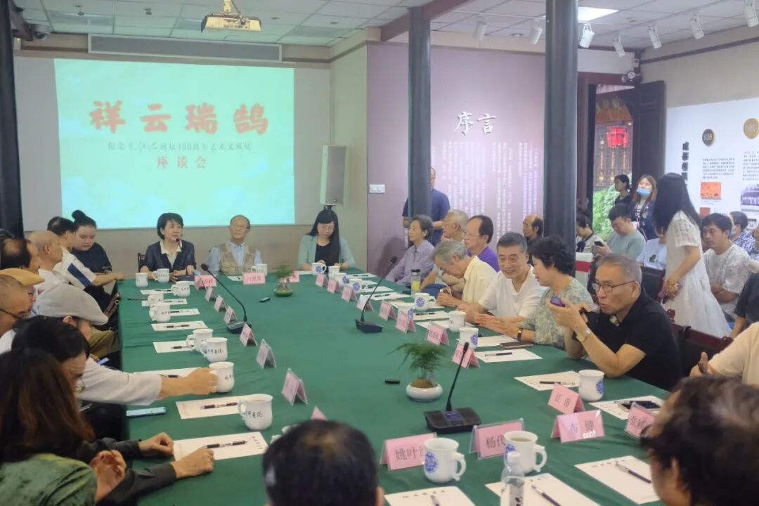 展览开幕后,朱佩君先生家属及40余位艺术家、美术理论家参加了在成都画院翰林厅举办的《祥云瑞鹄——纪念朱佩君诞辰100周年艺术文献展座谈会》,大家分别从不同角度对朱佩君先生的艺术进行了深入的交流探讨,现场洋溢着热烈的学术气氛。