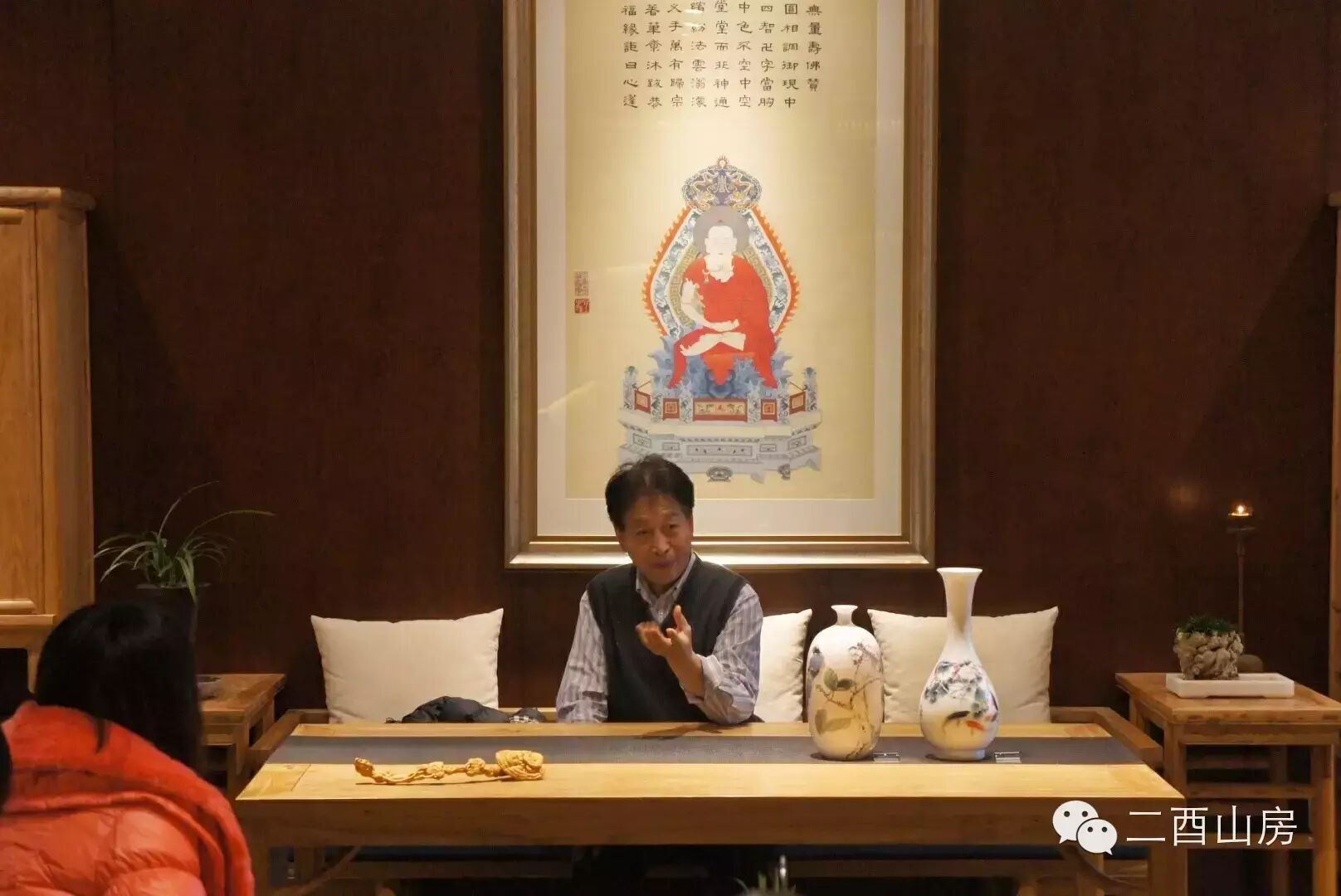 大家都很喜爱先生的“大红袍”画册,纷纷抢购一空,没拿到的朋友惋惜的留下了电话,过几天才能拿到,有位女士还拜托我们直接寄给朋友,要给朋友一个惊喜。还有一位爱好者买了一套瓷盘和转印花瓶,他说这些瓷盘都很珍贵,本身老师的瓷盘就不多,烧窑的成品,更是少有完美。他说要拿回家好好收藏,与朋友共同欣赏。