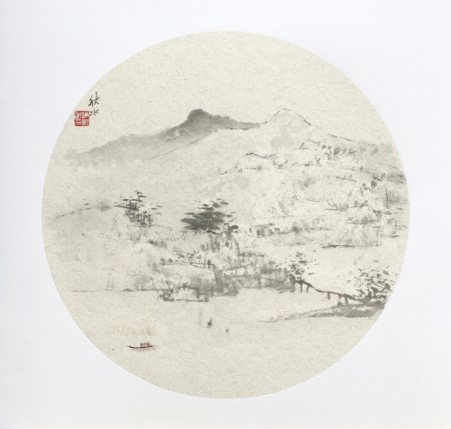 远山寂水。画面大抵以远山为焦点,近景可有可无,山是焦点而非终点,是画之眼而非画之身,是点而不是面。一袭远山,一片寂水,构成一片悠远枯寂之境,静是此刻的主题,天人合一,令人神往。代表作品如《虚近》《峰隐》《澄远》《寂水》系列。
